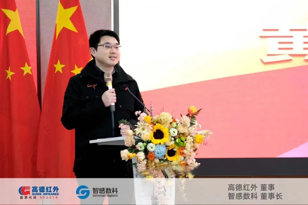 黄晟董事长发表重要讲话。他表示,经过20多年的高速发展,高德红外从一家不起眼的小公司,成长为专业从事红外探测器芯片、红外热成像产品、综合光电系统及完整装备系统科研生产的民营上市公司。高德掌握红外热成像相关芯片、产品、系统的全部核心关键技术,端到端产业链的全国产化自主可控,是名副其实的“中国红外芯”,也是全球唯一覆盖从底层红外核心器件到十几个分系统、直至顶层完整装备系统全产业链的军民两用产品研制基地。智感数科数字科技总部的启动,标志着高德红外集团又迈出了崭新一步。他对到场领导和嘉宾、生态伙伴一直以来的支持表示感谢,并期待继续进一步深化合作,共同在数字化、智能感知人工智能领域探索更多可能。