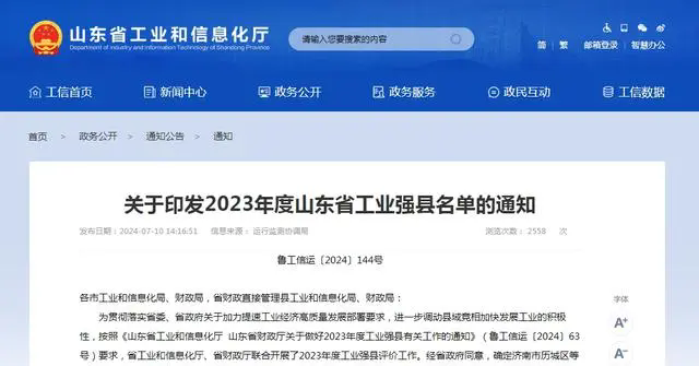 信网7月12日讯 近日,山东省工业和信息化厅官网发布关于印发2023年度山东省工业强县名单的通知,确定济南市历城区等10个县(市、区)为2023年度工业强县,其中青岛市平度市上榜。