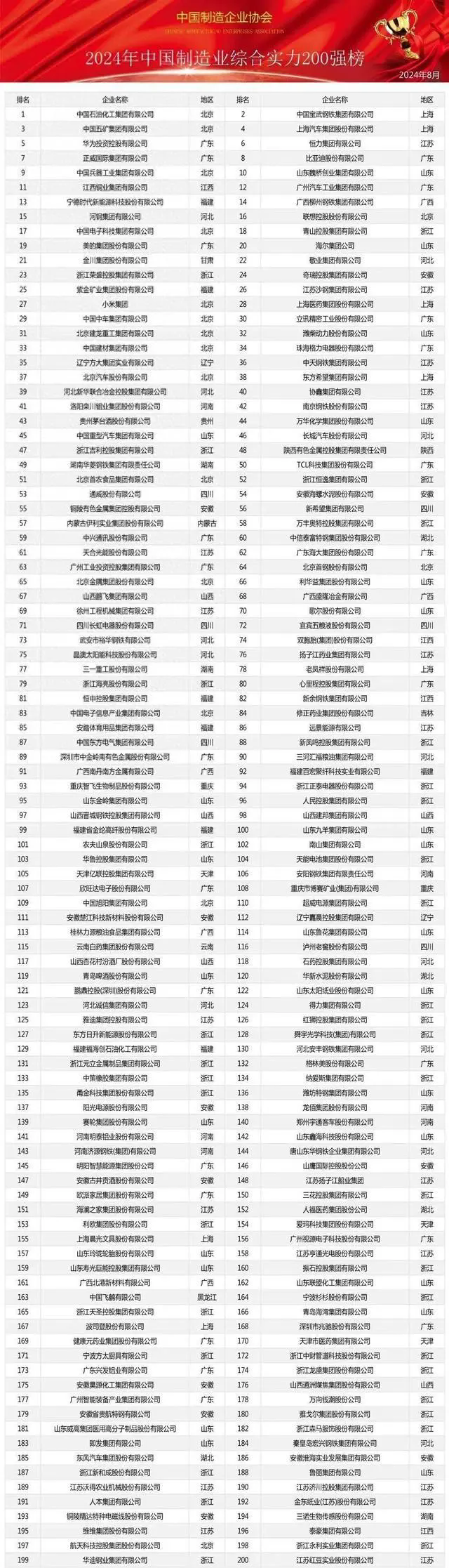 据悉,此次榜单的发布是中国制造企业协会对我国制造业企业进行全面、科学、独立调查研究的成果。经过对超过8000家中国大陆制造型企业的数据采集与深入分析,严格按照营业收入、资产总额、利润总额、所有者权益、研发投入、从业人数等多维度指标进行综合评分,并邀请百位企业高管、学者及官员参与评选,同时对部分候选企业进行实地拜访,确保了榜单的权威性与公正性。