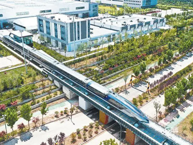 轨道交通装备产业集群是青岛正在全力打造的世界级产业集群之一。图为中车四方生产制造的磁悬浮列车。